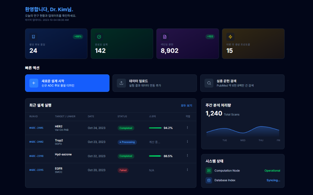 초기 ADC 후보 설계를 가속화합니다. 방대한 문헌 탐색 시간을 줄이고, 근거 기반으로 유망한 조합을 빠르게 도출합니다.
